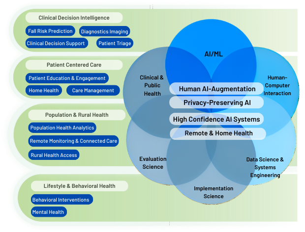 NSF AHeAD brings university researchers with healthcare industry stakeholders to conduct foundational research needed to create usable AI-augmented decision support tools that enhance healthcare delivery, improve patient outcomes, and reduce costs.